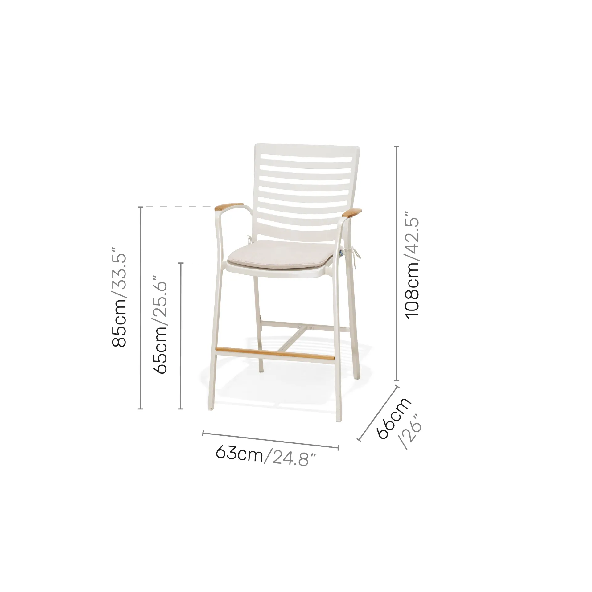 Elevate your outdoor space with the Portals 6-seater garden bar set. This sleek and stylish set includes a rectangular bar table and 6 cast aluminium chairs, each featuring elegant teak armrests and cosy beige cushions. Finished in a cream and teak wood design, it’s the perfect blend of durability, comfort, and timeless charm for your garden.