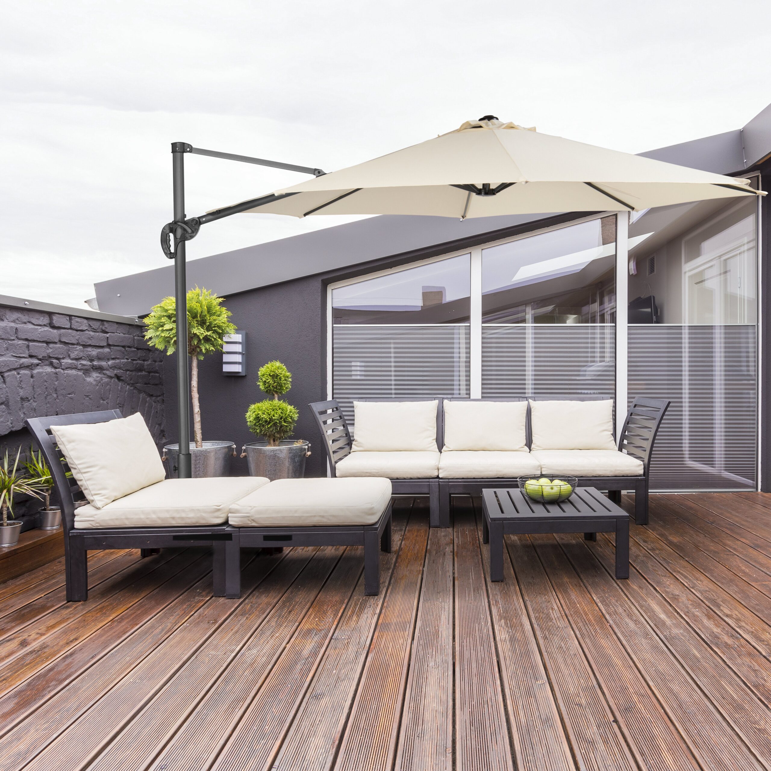 Elevate your sunny days with the stylish Ravenna Smart 300 cantilever parasol. Featuring a spacious 300cm canopy and a sleek design, it’s perfect for creating a Mediterranean-inspired retreat in your garden or terrace.